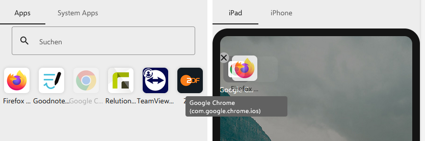 Der Platz, an dem die Apps auf dem Homescreen angezeigt werden, kann festgelegt werden, dadurch findet jeder Benutzer die App an dem gleichen Ort.