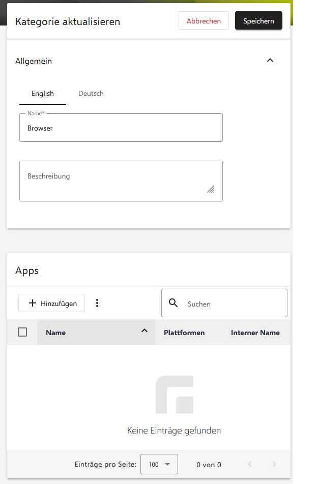 Nachdem die Kategorie angelegt ist, können SIe durch Öffnen der eben erstellten Kategorie Apps hinzufügen.