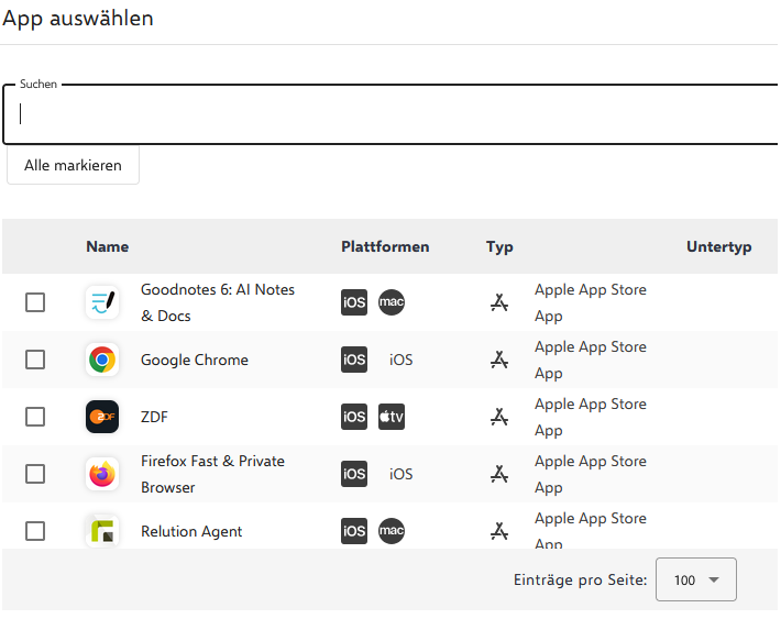 Mit + Hinzufügen können Sie aus den verfügbaren Apps die auswählen, die sie zu dieser Kategorie hinzufügen möchten